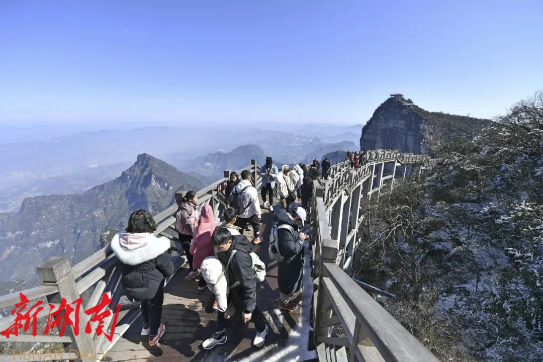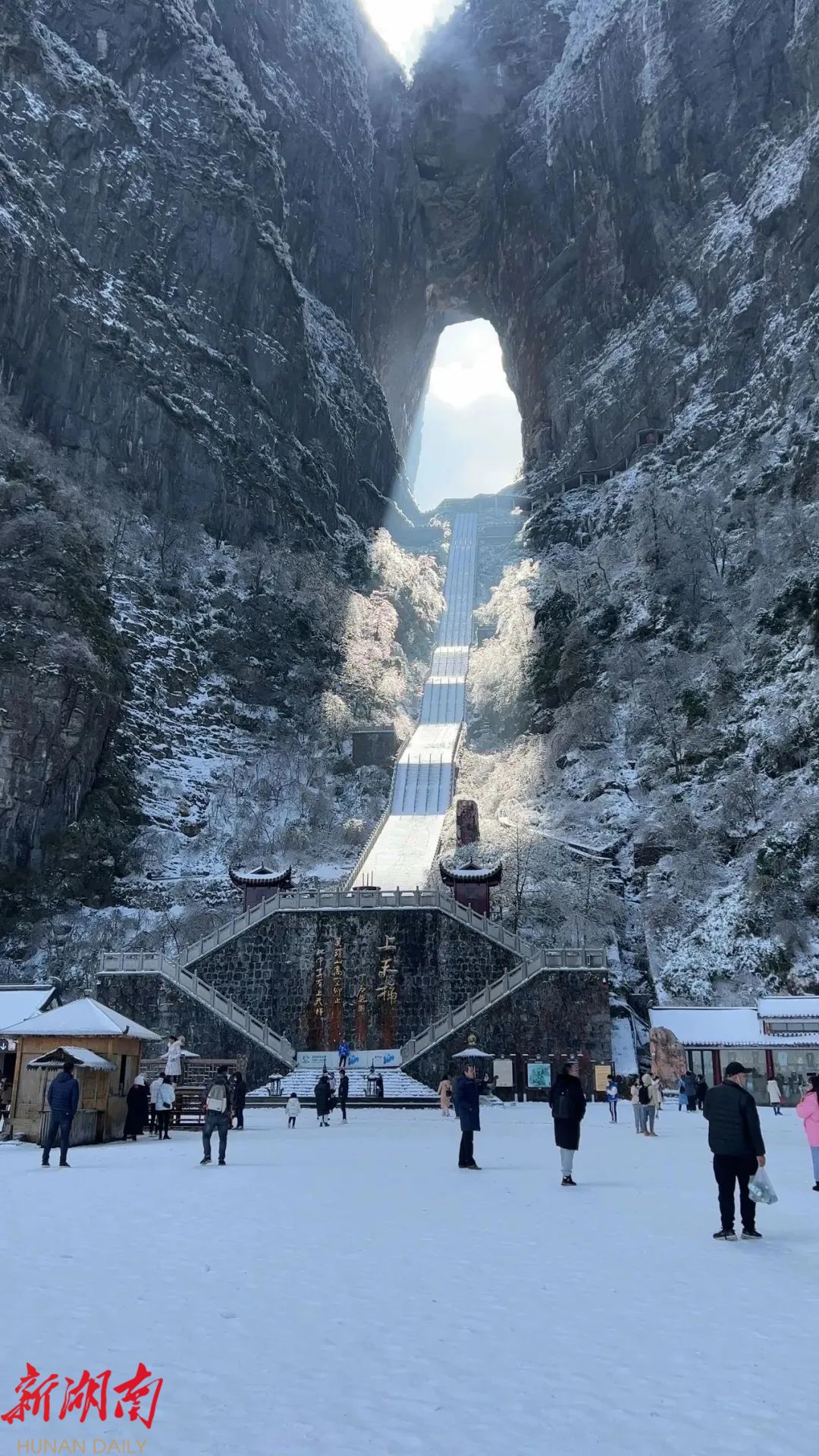 湖南日报·新湖南客户端2月11日讯(记者 樊文婷 视频 龚雯)春节前,纷纷扬扬的大雪把天门山变成了银装素裹的冰雪世界。2月10日,农历大年初一,天门山景区游人如织,纷纷观赏雪后美景。