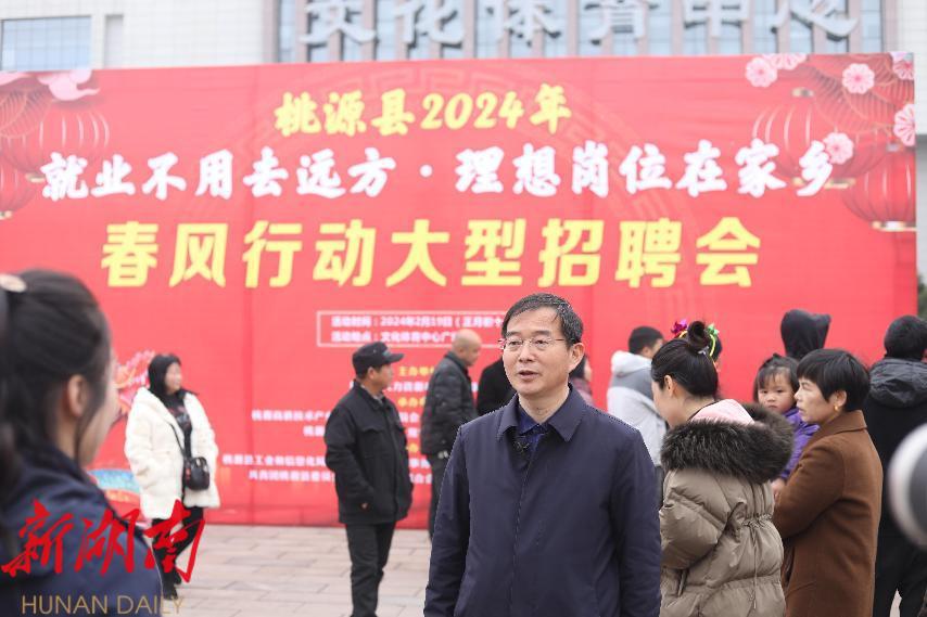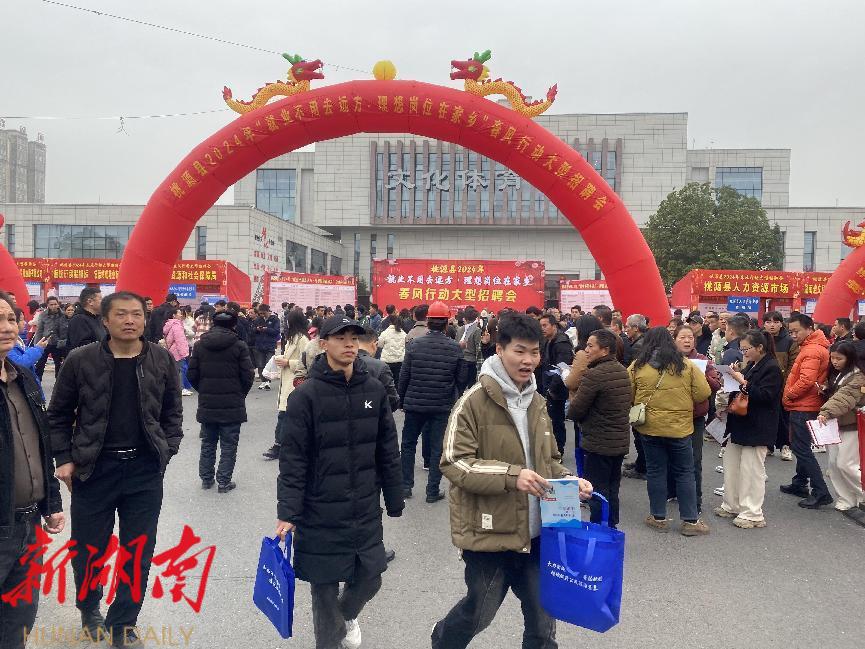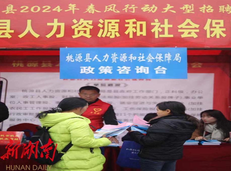 龙年伊始, 2月19 日, 桃源县 龙年首场“就业不用去远方 · 理想岗位在家乡”线下大型招聘会在县文体广场 隆重举行, 此次招聘会 旨在利用返乡人员回家过年 的契机 , 帮助部分愿意留在家乡发展的和有用工需求的园区企业搭建一个双向选择的平台,帮助桃爸桃妈们,在家乡桃源找到一个既能打工赚钱,又能照顾父母、陪伴小孩的理想工作岗位,实现稳就业和促发展的双赢。
