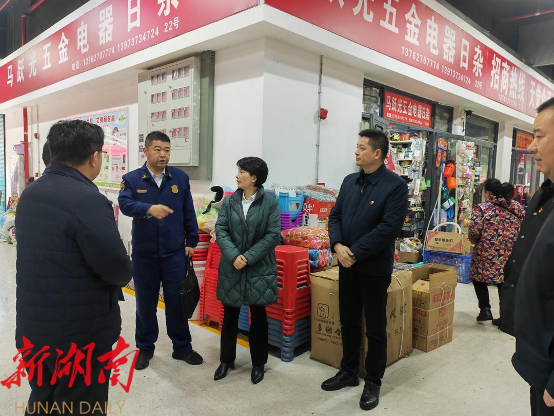 在桥北市场群,黄瑛区长一行详细检查各市场的人防、物防及消防安全情况、消防控制室值班值守情况。她指出,随着春节临近,返乡人员增多,人流量增大,市场交易和聚集性活动将出现高峰,各单位要强化责任意识,加强隐患排查,确保市场经营秩序稳定和消防安全形势稳定。在蓝天使小主持培训机构,检查组重点对安全出口、疏散通道是否畅通,消防设施器材是否完好有效,是否采用易燃可燃材料进行装修,门窗上是否设置影响逃生和灭火救援障碍物,防火门是否处于正常启闭状态,楼梯间是否存在违规堆放杂物等情况进行了逐一检查,要求负责人牢固树立安全意识,通过集中宣传教育、组织开展疏散逃生等多种形式,有效提高广大师生的消防安全意识和逃生自救能力。