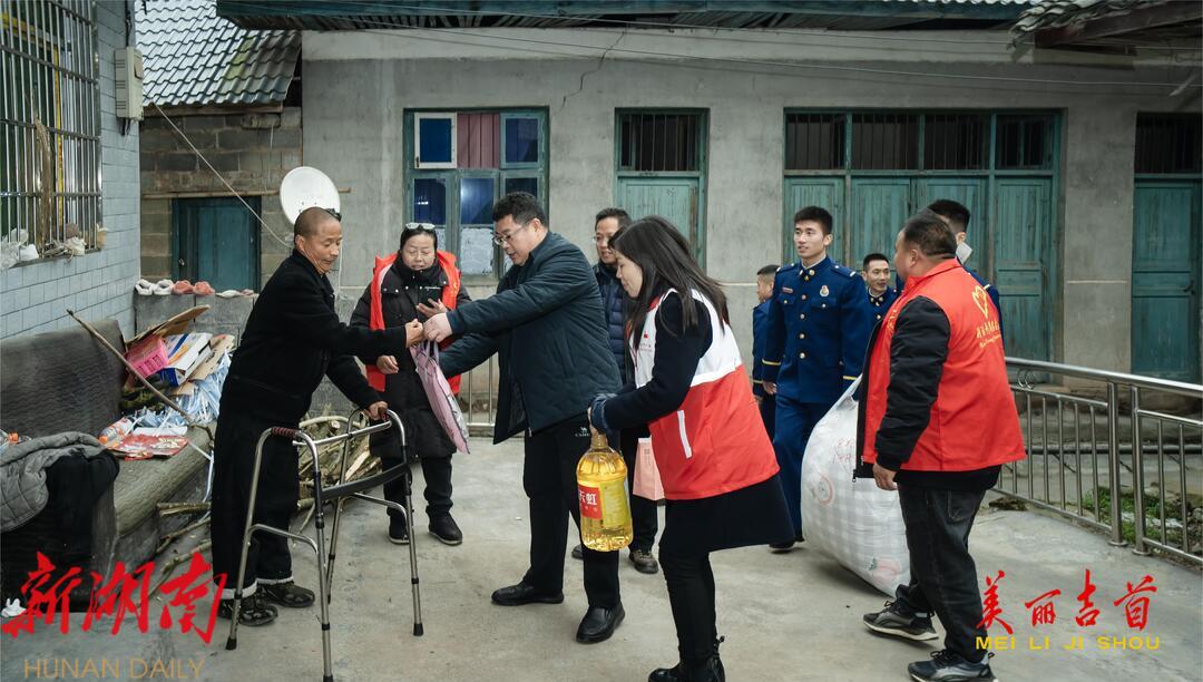连日来,吉首市红十字会、市残联、市消防救援大队携手爱心企业,开展“博爱送万家 春风暖苗寨”活动,为民办实事、解难题、送温暖。