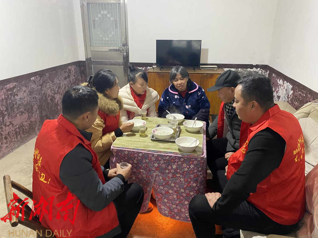 这方锣鼓喧天,那处温情暖心。“热腾腾的汤圆出锅咯!”一大碗冒着滚滚热气的汤圆端上了芦塘村上马组苏应林老人家中的茶几,一群“不速之客”正围绕在老人身边,陪着拉家常,叙琐事,气氛温暖又和谐,正是芦塘村党总支书记刘玲与联村干部、邻里守心团一行人组成的“汤圆小队”。