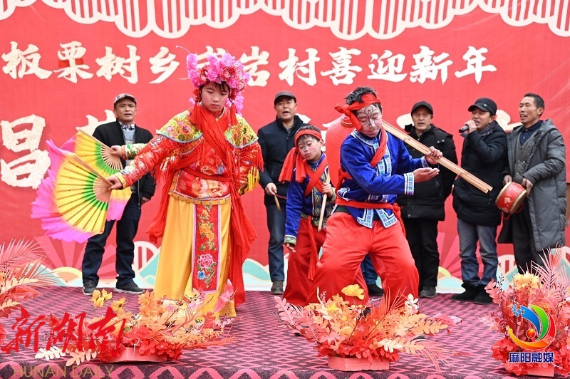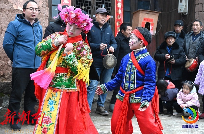 花灯戏是一种扎根麻阳民间、深受群众喜爱的民间传统歌舞艺术。武岩村人爱唱花灯、爱看花灯,由于多种原因,停唱了30多年。今年1月初,在向秀和、向秀中等老艺人组织下,武岩村重新组建戏班,找来五个聪慧的儿童,扮演灯姑娘与癞花子,他们不顾寒冷,日夜排练,如今,这一戏班子已能演唱数十出花灯戏。癞花子向钦很是自豪地说:“我学跳了50多天,现在我会唱、会跳30多出花灯戏啦。”