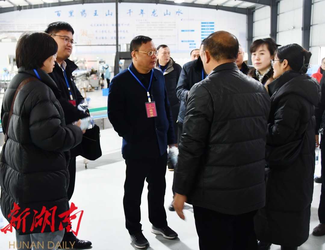 授牌仪式结束后,县人大常委会又组织部分市、县人大代表到湖南湘润饮料有限公司开展了视察活动,实地察看水源地的管理保护及企业项目建设、饮用水生产情况,听取企业有关工作汇报,详细了解水源水质、生产能力、销售渠道、经营模式及市场拓展等情况。视察组指出,新邵严塘白水洞片区生态环境优越,水资源丰富,水中含有大量对人体有益的矿物质或微量元素,要加强水源地的水土保持工作,促进水资源可持续利用。政府部门要进一步优化营商环境,切实为企业提供快捷、高效、优质的服务,确保企业持续健康发展。企业要进一步加大品质、品牌建设和宣传推介力度,坚持以品牌建设为引领,充分挖掘产品卖点与优势,加大营销力度,深化合作,不断拓展市场空间,真正把新邵优质的水资源推向全国、推向世界。