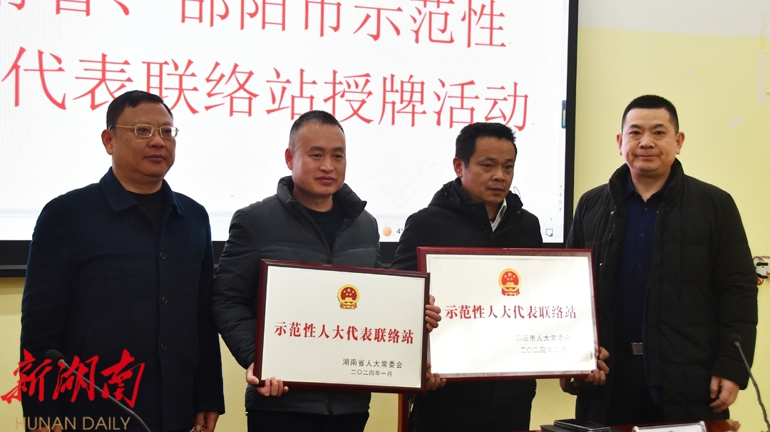 新新邵客户端2月27日讯 2月27日,新邵县人大常委会在严塘镇白水洞片区人大代表联络站举行湖南省、邵阳市示范性人大代表联络站授牌仪式。县人大常委会党组书记、主任刘长峰,县委常委、常务副县长王智刚,县人大常委会党组副书记、副主任周晓明,县人大常委会副主任田丰硕、周湘平、石争光、蒋文华及县人大各委室负责人,各乡镇人大主席,部分人大代表参加。
