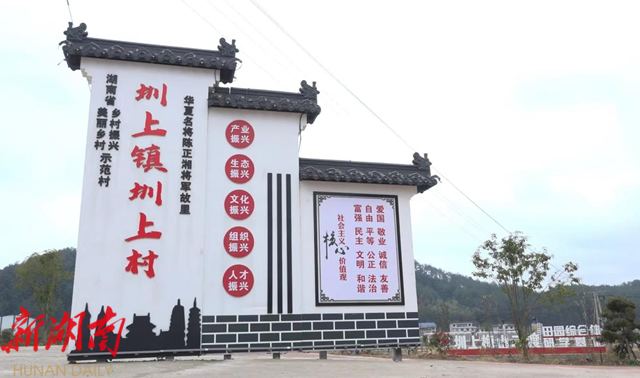新化县圳上镇是一片红色热土,方鼎英、陈正湘、陈树华、陈载华、罗盛教等名流辈出、书写传奇。圳上村为华夏名将陈正湘故里,是湖南省乡村振兴重点推进村和美丽乡村建设示范创建村,是娄底市文明村和乡风文明示范村。全村总面积6.7平方公里,辖13个村民小组,888户,总人口2936人,中共党员105人。全村耕地面积1920亩,其中水田1450亩、旱土470亩,林地面积4880亩。圳上村赓续红色血脉,续写时代华章,以建设和美乡村、推进乡村振兴为目标,激发村民共建、共治、共享,全力打造“实力强、百姓富、生态美”的新时代特色幸福村。