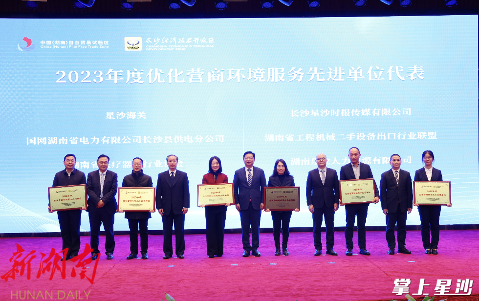 大会公布了园区2023年政策兑现情况。2023年,长沙经开区惠企政策共兑付资金22.19亿元,其中本级资金18.20亿元,涵盖招商引资、产业发展、科技创新、人才引育、金融帮扶、审批服务等方面,政策“免申即享”“全程网办”事项比例达50%;表彰了一批在招商引资、项目建设、科技创新、亩均效益、外资外贸、营商环境、安全生产等方面作出突出贡献的优秀企业和单位。