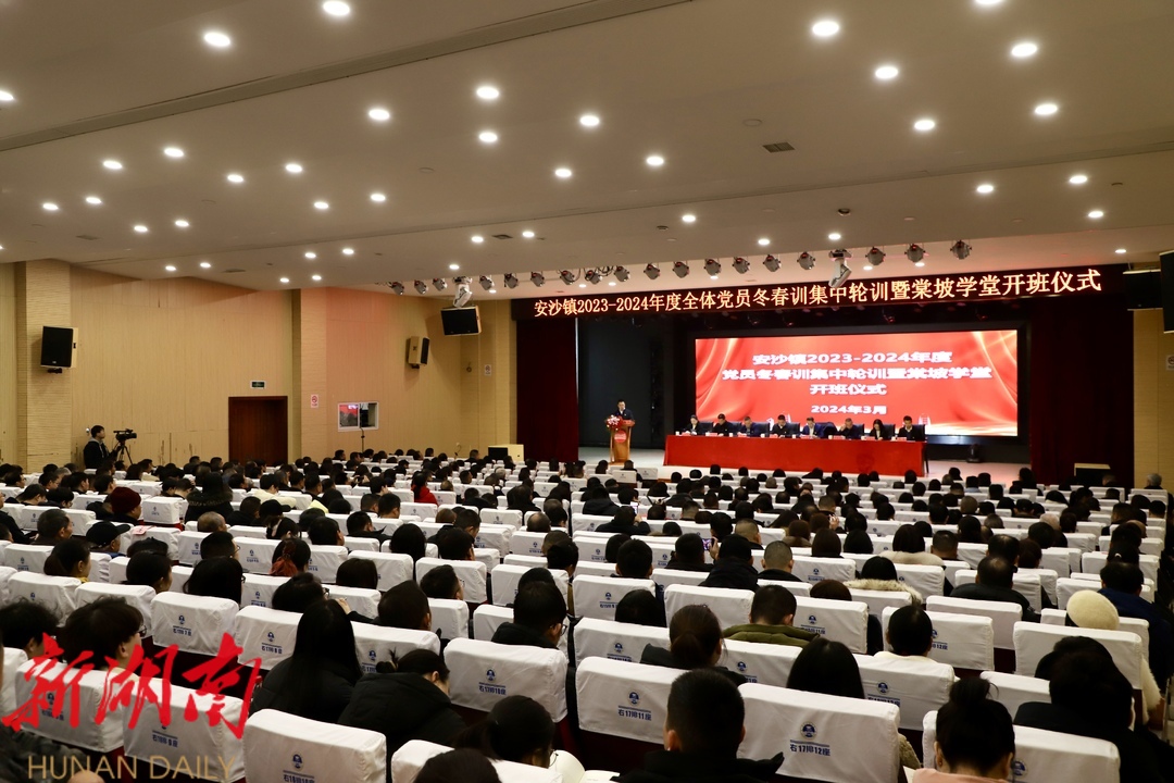 湖南日报·新湖南客户端3月3日讯(通讯员 阮霖浩)今天,长沙县安沙镇2023-2024年党员冬春训集中轮训暨棠坡学堂开班仪式举行,通过“线下授课+线上直播”的方式,将镇“主会场”和16个村(社区)“分会场”同频联动,实现全镇党员培训全覆盖,推动基层党组织各项工作提质增效、充电蓄能。