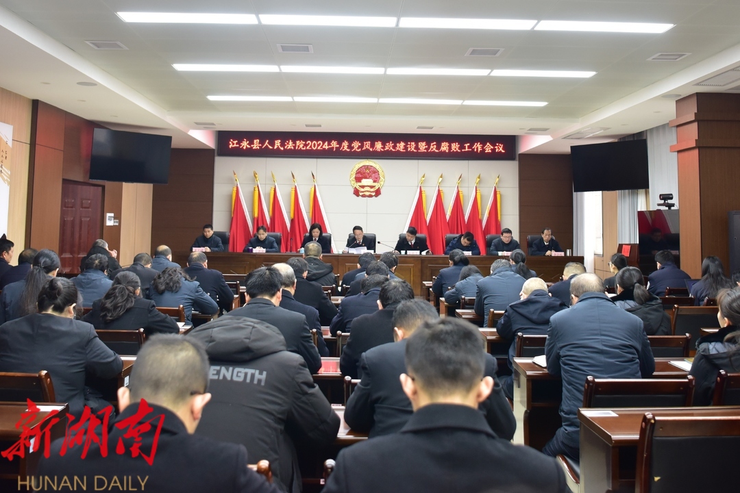 新江永客户端讯(通讯员 呼延松) 3月1日,江永县人民法院召开2024年度党风廉政建设暨反腐败工作会议,总结去年工作,分析当前形势,部署今年任务,推进全面从严管党治院向纵深发展。该李湘沅作讲话。