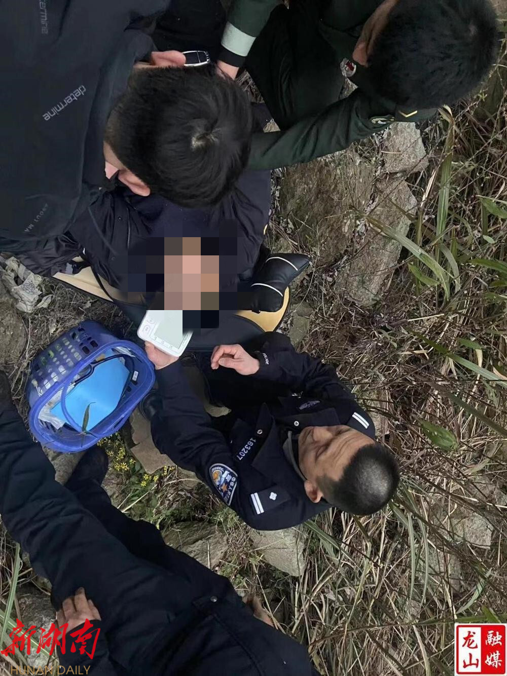 这时,附近村民从家里拿来一根长尼龙绳,众人当即决定,将伤员用绳子从陡坎下拉上去!