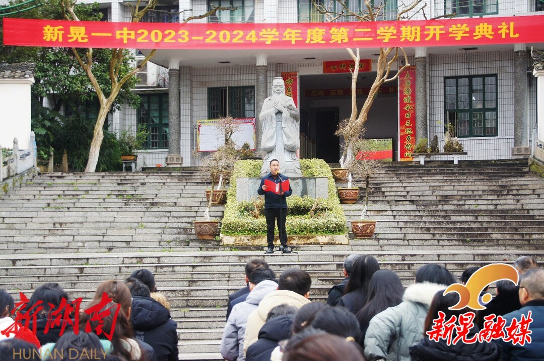 新晃一中负责人发表了新学期致辞,希望全体教师大力弘扬教育家精神,牢记“为党育人、为国育才”使命,坚守三尺讲台,潜心教书育人,为学校发展贡献自己的力量。同时,向全体学生提出殷切期望,希望同学们立鸿鹄志,勤学苦读,做有志气、肯奋斗、敢担当的青年学生,以“长风破浪会有时”的信念、“咬定青山不放松”的坚持、“只争朝夕”的姿态一起迎接热辣滚烫的新起点。