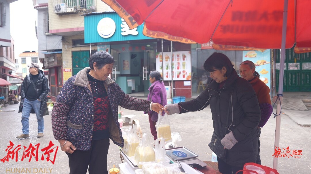 “现在做出来一盆是四五十斤,每次赶集的时候卖一盆,到了二月初一,因为是吃米豆腐的季节,可能要卖到十盆。”邓爱国夫妇告诉记者,米豆腐在当地历史十分悠久。相传,以前的庄稼人为期盼有一个好的收成,还会专门把米豆腐喂鸟,防止农作物被损坏,现如今,这个传统习俗被世世代代传承下来,成了当地的一道特色美食,在每年的二月初一,人们都会不约而同地吃上一碗Q弹爽口的米豆腐。对于邓爱国而言,吃米豆腐其实就是希望丰收,也意味着丰收。