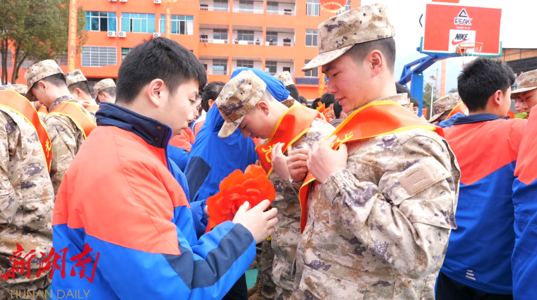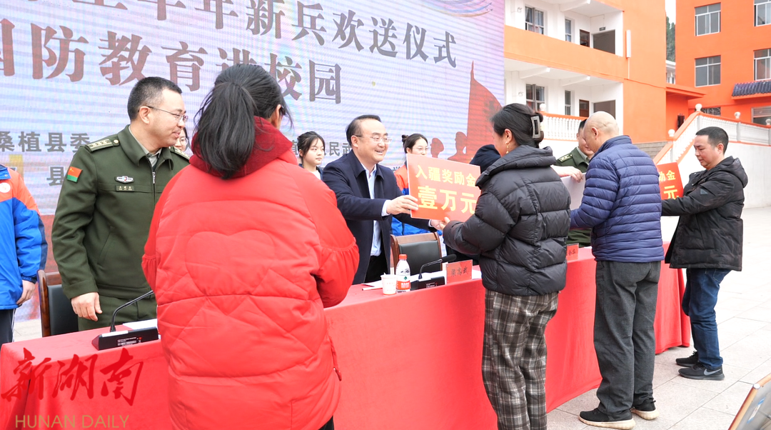 新兵欢送大会在庄严的国歌声中正式开始,大会宣读了2024年新兵入伍命令。出席活动的领导为新兵家长代表颁发“光荣之家”牌匾、入疆奖励金,贺龙中学学生为新兵们佩戴了绶带和大红花,新兵们在认真聆听党的二十大代表、市征兵形象大使、一等功获得者李兴坤分享自己的从军经历和抗美援朝老兵董武松送上的殷切寄语后纷纷表示,入伍后会守纪律,听指挥,刻苦训练,努力成为“能打仗、打胜仗”的优秀军人,做祖国的忠诚卫士,为自己和家乡多争荣誉、多立新功。
