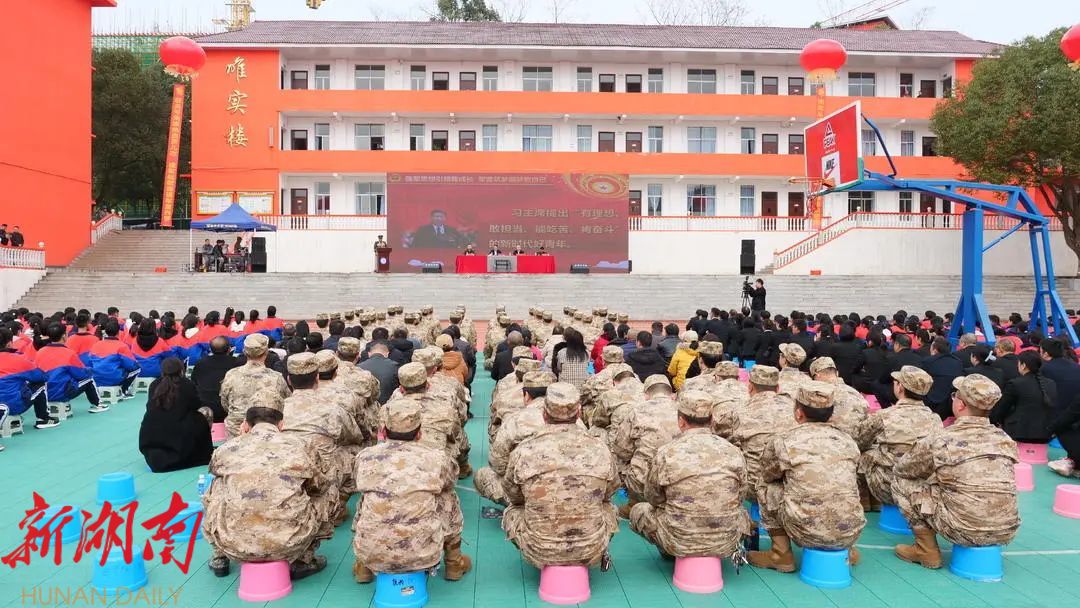 3月8日,我县在贺龙中学举行2024年上半年新兵欢送仪式暨国防教育进校园活动,热烈欢送新兵奔赴军营、建功立业、报效祖国。县委副书记、县长、县国动委主任梁高武,县委常委、组织部部长张金华,县人武部部长王建生,县人武部副部长钟伟出席欢送仪式。