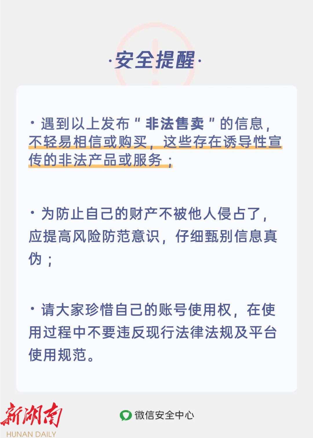 用户利用微信个人账号、朋友圈、微信群、公众号等产品功能发布、展示、传播此类“违法售卖”营销信息的行为,不但违反了相关法律法规,同时也违反了