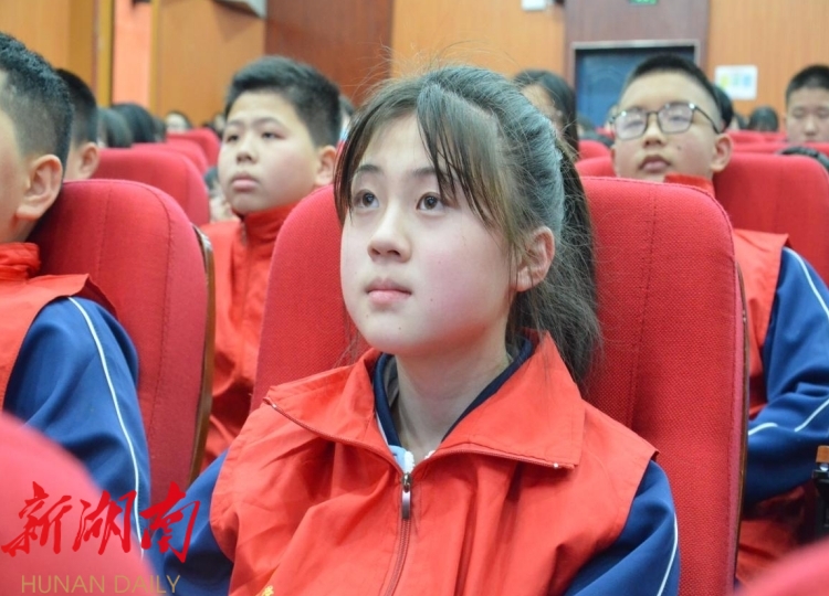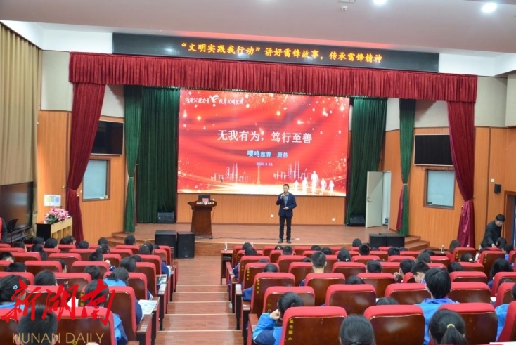 3月14日下午,在长沙县天华中学报告厅内,一场“‘中国好人’进校园宣讲雷锋精神”的学雷锋主题活动正在火热进行中,活动由长沙县泉塘街道新时代文明实践所、银河社区党总支、社区新时代文明实践站、长沙县天华中学共同主办,200余名社区志愿者、天华中学师生参与。
