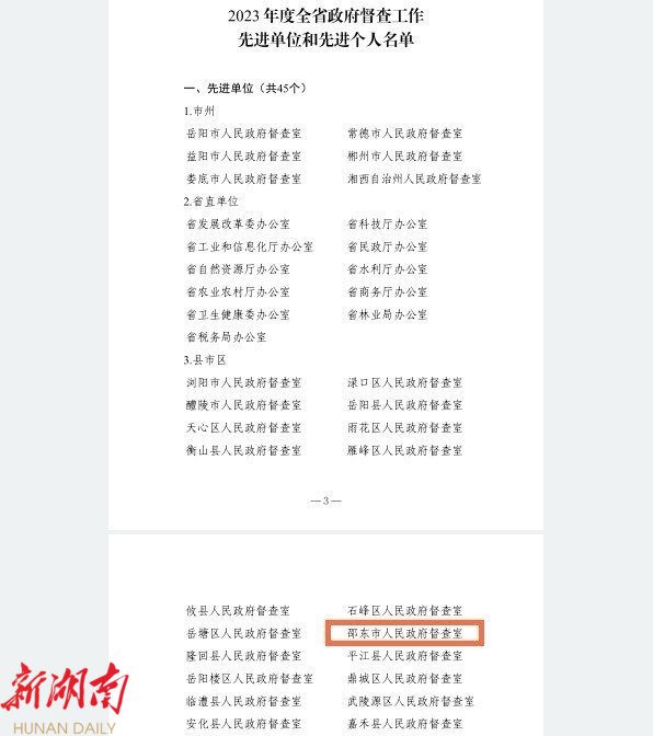 邵东市政府督查室获评2023年度全省政府督查工作先进单位