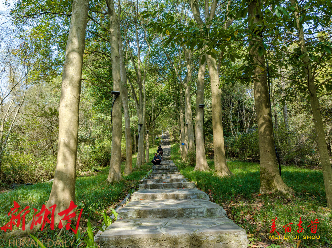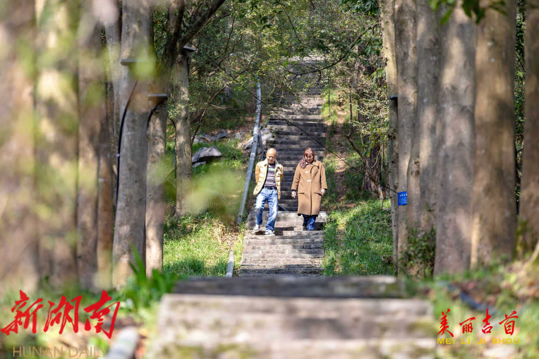 市民在吉首市矮寨国家森林公园红山国有林场内休闲散步。