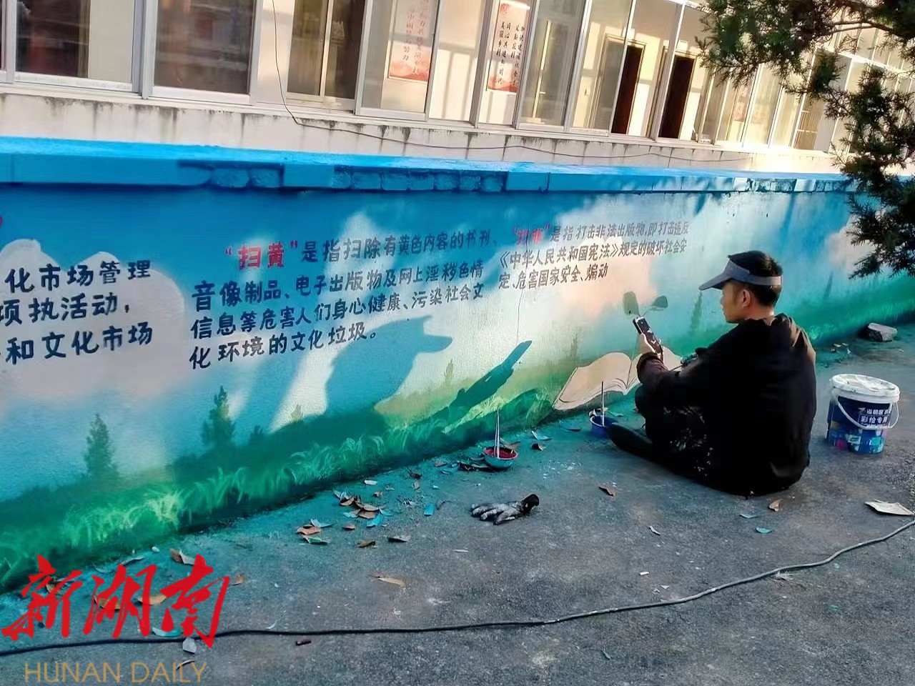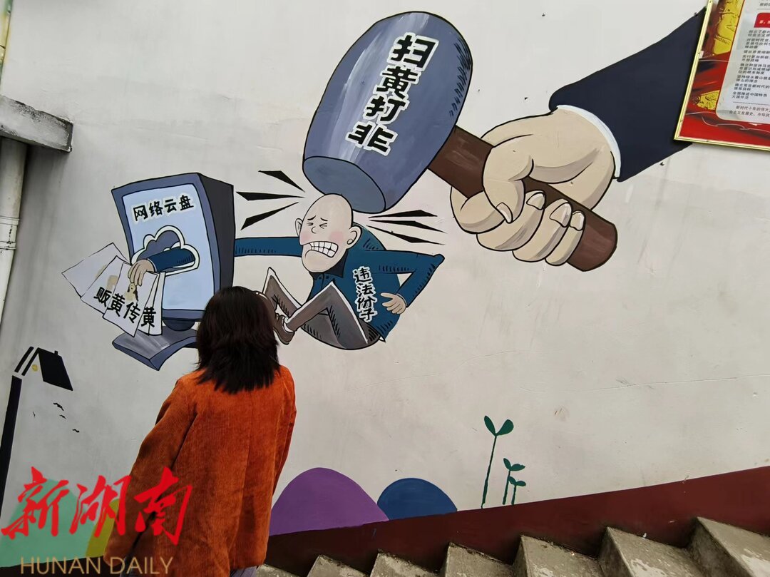 “这个宣传模式好,画在墙上又好看,同时也接受了难得的思想教育,在今后的学习生活中,我要带头养成绿色阅读、文明上网的良好习惯,自觉抵制非法有害出版物和不良信息,争做‘扫黄打非’小卫士”。放学途中看到这一幕的学生们说道。