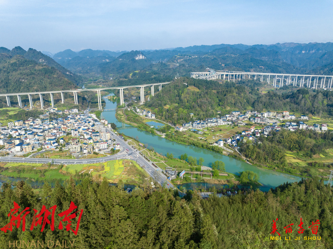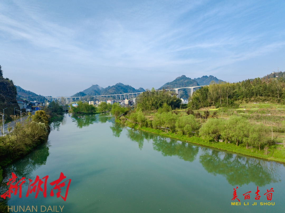 3月26日,吉首市峒河国家湿地公园,村庄、田野、公路、青山与碧水蓝天构成了一副春日生态美景。近年来,该市坚持生态优先,绿色发展,通过绿化提质改造和水资源综合治理等措施,生态环境明显改善,形成了“河畅、水清、岸绿、景美”的湿地生态画卷。
