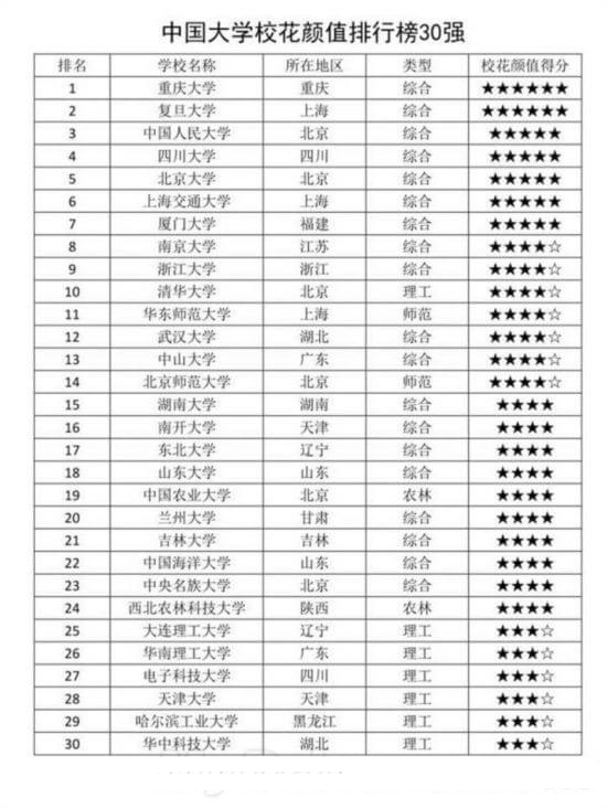 中国大学校花颜值排行榜重庆大学居榜首