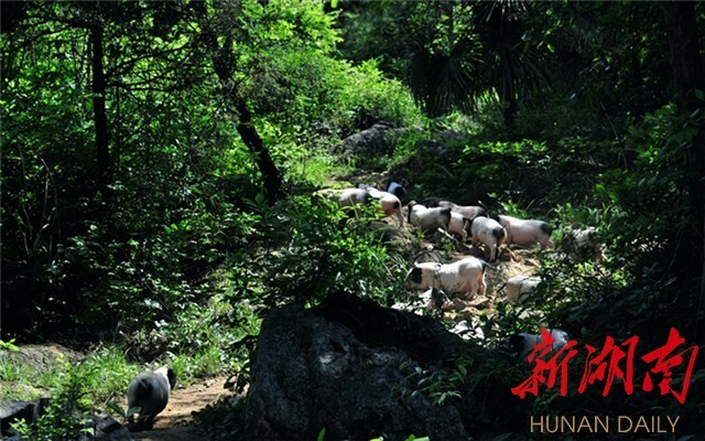 图为:喝山泉水、吃山里食材长大的巴马香猪,是城里人最青睐的美味佳肴。张友亮 摄