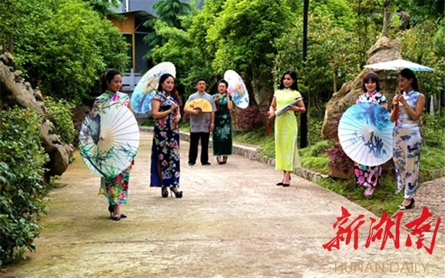 图为:山羊冲村的妇女们再也不为柴米油盐所困扰,如今她们也像城里人那样兴起了时尚的旗袍秀。张友亮 摄