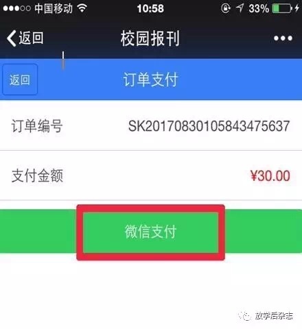 点击“下一步”后,进入下图页面,点击“微信支付”付款。