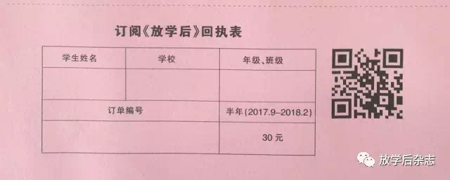 收到杂志订阅成功信息后,根据信息内容填写《订阅回执表》。表中订单编号一栏填写订阅成功信息里的订单编号,表格内容填写完成后交到班主任老师处备查,报社将分批次统一配送杂志到学校。