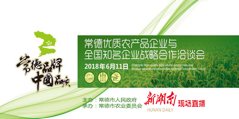 2018年6月11日,“常德品牌 中国品质”常德优质农产品企业与全国知名企业战略合作洽谈会,将在长沙举办。现场将签订一批产销采购订单,同时还将在洽谈中达成一批大型招商引资项目合作意向。活动由常德市人民政府主办,市农业委员会承办,旨在进一步扩大常德品牌农业开发开放、打造千亿健康食品产业,同时提升农产品质量监管水平,促进企业健康成长;营造良好营商环境,实现农业产业与其它产业融合发展。湖南日报新湖南客户端将进行现场直播,敬请关注!(直播总策划 周勇军 直播统筹 李寒露 直播记者 鲁融冰 摄影 李健 后台编辑 彭倩)
