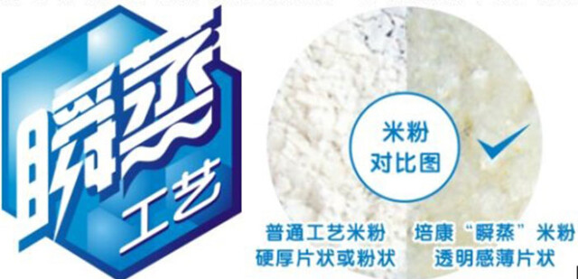 使用适合的工艺是一个很重要方面,培康采用的瞬蒸工艺,利用15秒时间瞬间蒸熟,减少营养素的流失,最大程度上保留大米原有的营养,宝宝不容易出现上火的情况,而冲调上采用了片状,吸水性增强,只需要60度以下水温便可冲调均匀