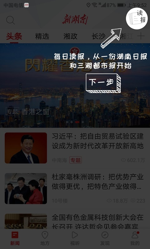 3.读报增加三湘都市报电子版,今日份的阅读,从一份湖南日报和三湘都市报开始;