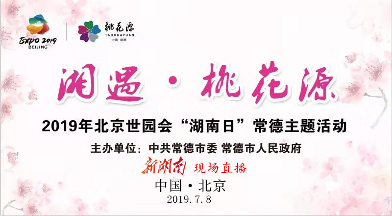 作为“幸福湖南、相聚北京”的活动之一,7月8日,由常德市委、市政府主办的常德主题活动将在北京世园会演艺中心小剧场隆重举行,推介常德旅游,发布文旅康养产业项目,举行签约仪式。届时,新湖南常德频道带您“湘遇”神秘的桃花源!(直播策划:周勇军 直播记者:姜鸿丽 直播后台:肖洋桂 卜云)