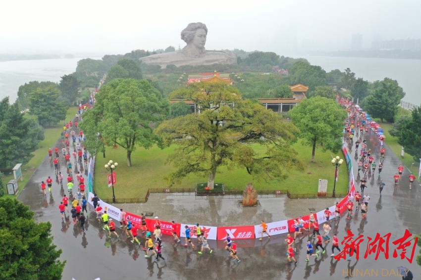 在雨中,跑者们感受到清新宜人的空气、滔滔不绝的江水、郁郁葱葱的香樟、芳香宜人的金桂。层层水雾让我们看不尽948公里的悠悠湘水,却深深感受到母亲河在潇湘女神娥皇女英的庇佑下,滋养着两岸土地古往今来钟灵毓秀、人杰地灵。看到了既蕴含着生命的勃发,又不离与自然的抗争,培育了长沙人“霸得蛮”的性格和拼搏的精神。