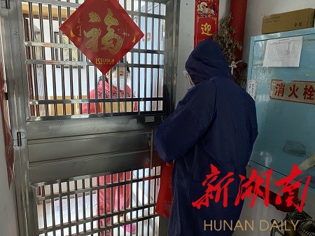 志愿者将汤圆送至隔离人员家门外