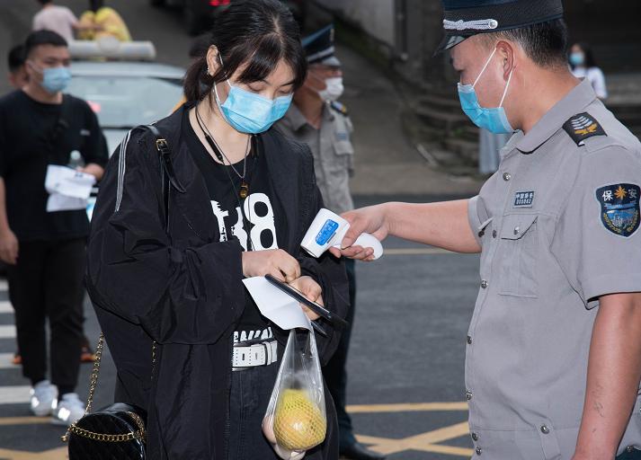 进校前,考生须接受体温测量和出示健康码,若发现有发热、咳嗽以及其他突发疾病,学校医务组会组织及时送医。此外,对于感染非新冠肺炎确需考试的体温异常考生,学校则根据其出具的医疗机构诊断说明和书面承诺书,送入“隔离考场”进行考试。