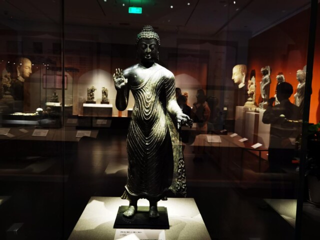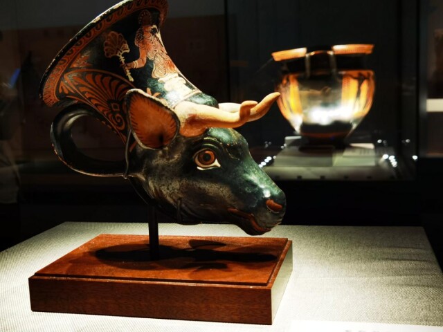 湖南师范大学美术学院教授、副院长李蒲星在主题为“平山郁夫与丝路物语”的讲座中,从艺术史的角度总结了关于此次展览四大看点:古希腊陶瓶画开启了西方绘画美术史;丝路古国的金器诉说着逝去的昔日繁华;波斯陶塑的传统和现代;欧亚文明融合而成的犍陀罗佛像艺术。