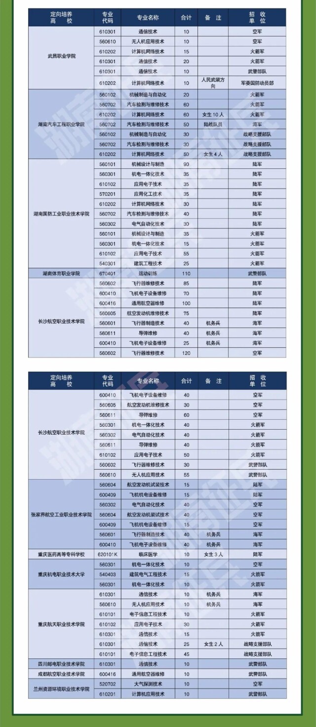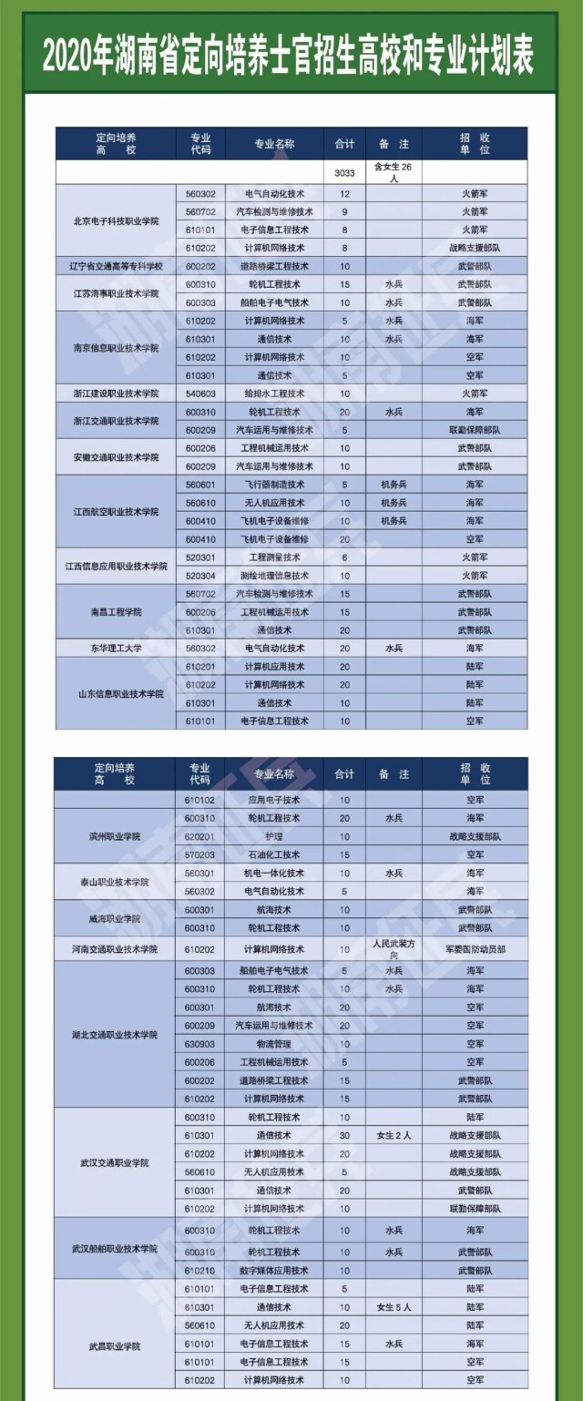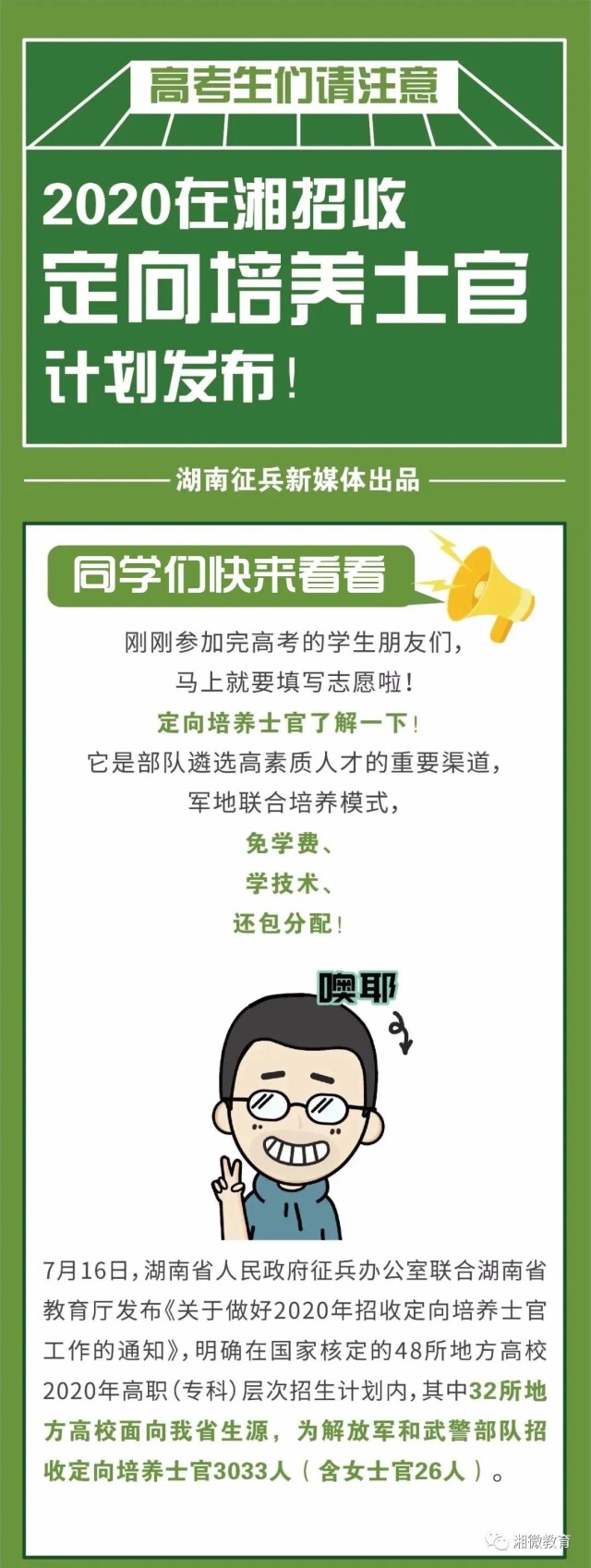 免学费 包分配!招3033人!湖南定向培养士官计划来了