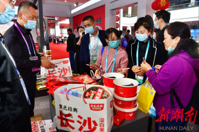 “黑色经典臭豆腐spicy!”赞比亚交易团一位代表点赞。黑色经典品牌联合创始人卢路成告诉记者,3天时间,该展位已经接待世界各地30多个交易团的代表,零食化的小袋包装,备受青睐。