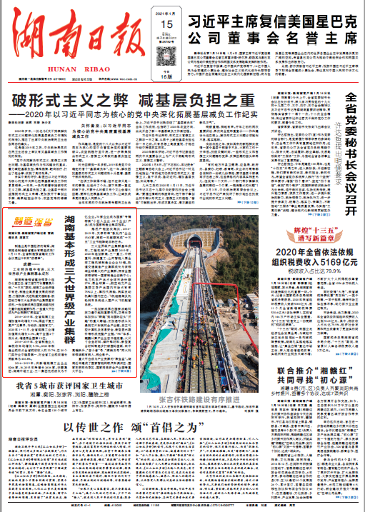 湖南制造强省建设领导小组办公室主任、省工信厅厅长曹慧泉介绍,“十三五”期间,湖南工业经济稳中有进,制造业高质量发展成效明显,工程机械、先进轨道交通装备、航空动力等三大世界级产业集群基本成形,一批创新成果在国家战略科技力量中起到重要作用,一些重大平台成为产业资源的“聚宝盆”。