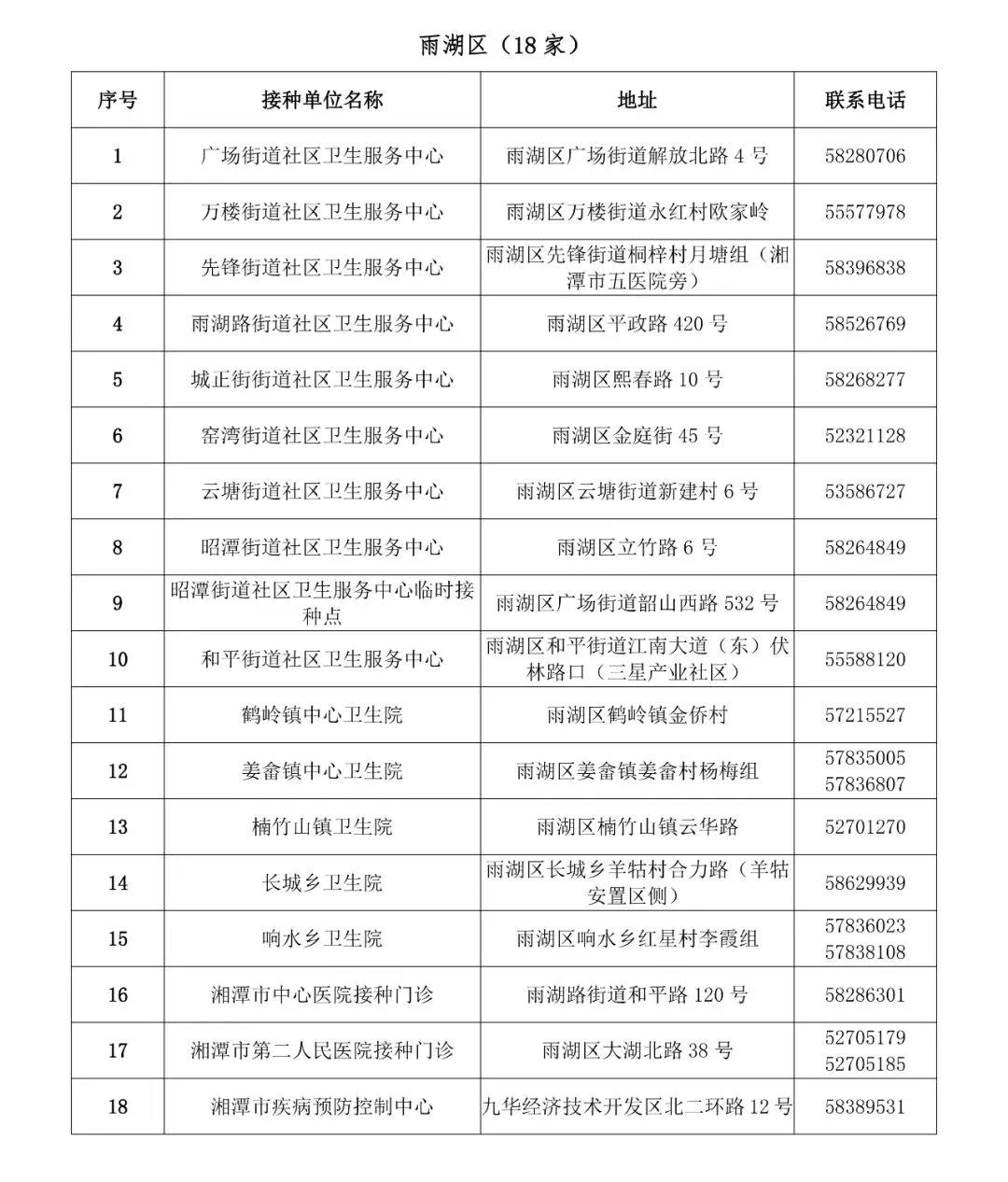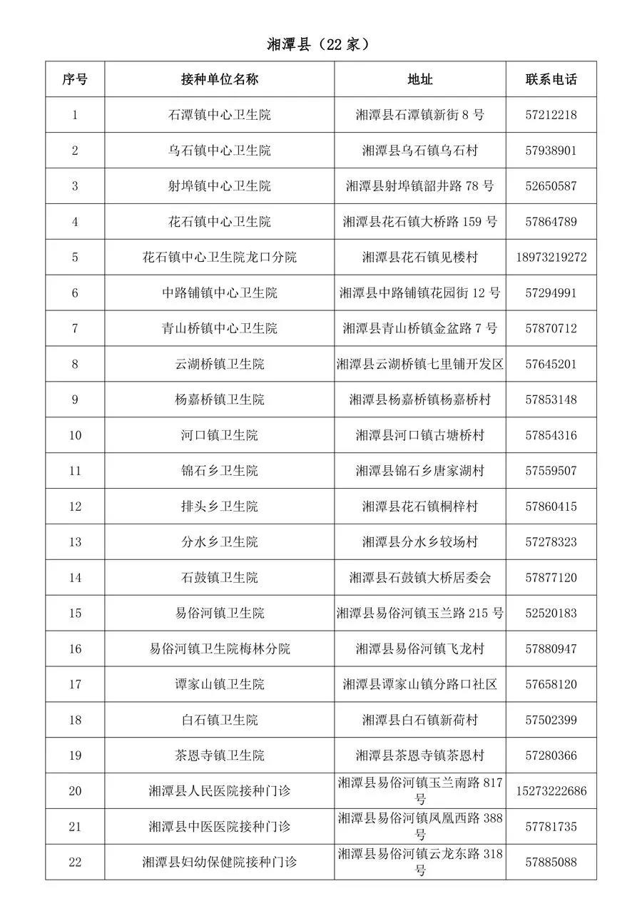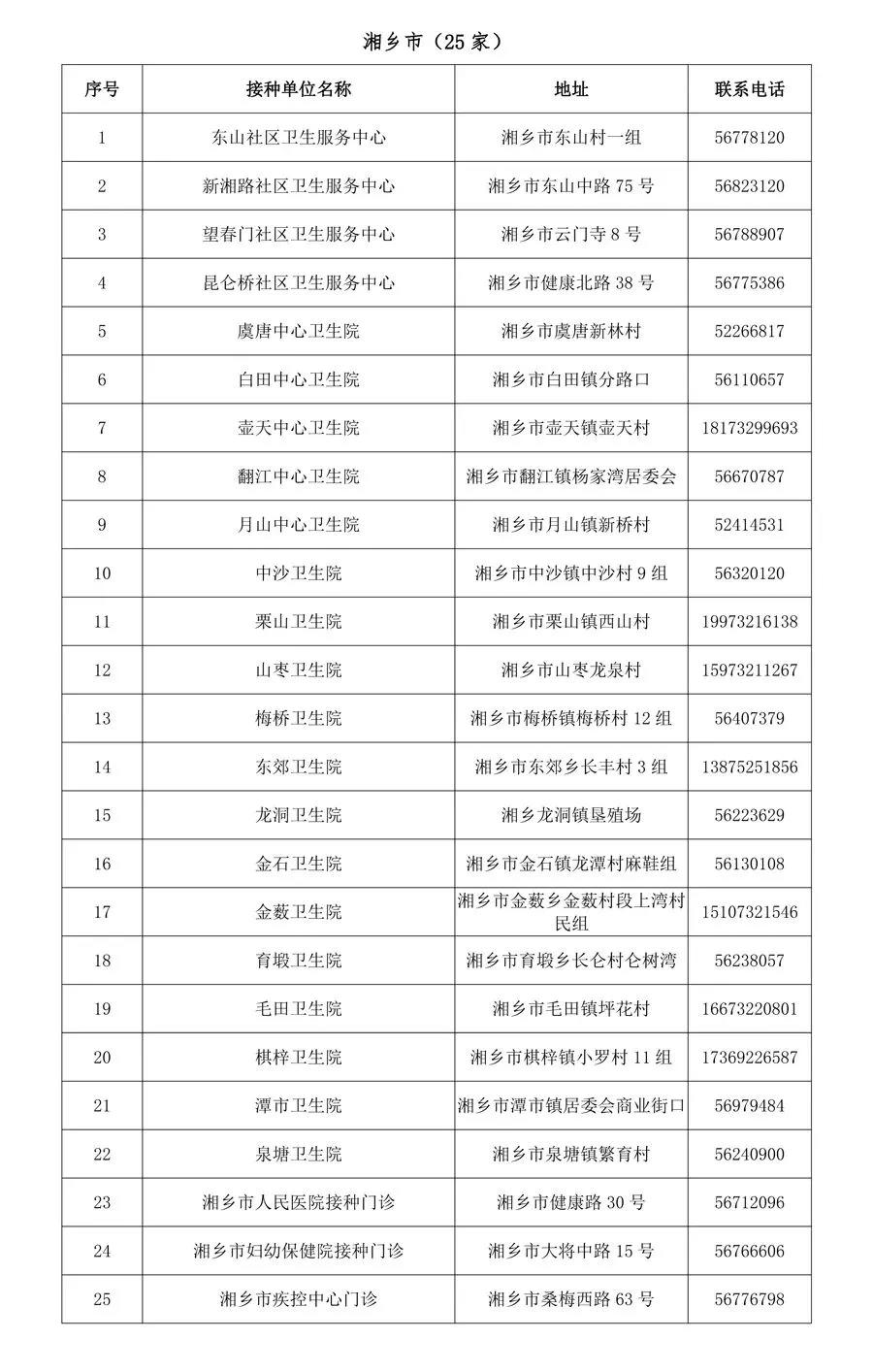 湘潭市第一批新冠疫苗接种门诊名单(81家)