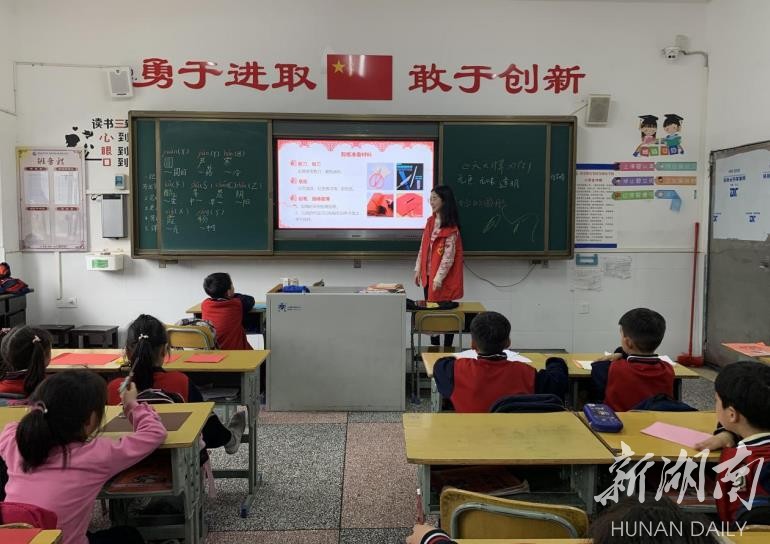 湖南日报·新湖南客户端5月17日讯(通讯员 吴宝善 记者 杨玉菡) “张旭三杯草圣传,脱帽露顶王公前,挥毫落纸如云烟……”近日,湖南工艺美术职业学院20余名青年志愿者前往益阳市中心城区金银山小学,开展“湖湘优秀传统文化走进中小学”支教活动。