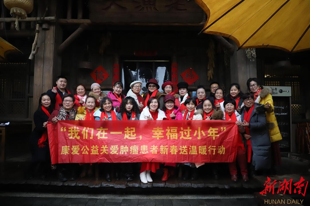 大众卫生报•新湖南客户端讯(通讯员 贺琼)1月25日,室外低温阴雨,位于长沙市湘江南路的湘江里·老渔村包厢里却欢声笑语,暖意融融。湖南康爱肿瘤患者服务中心(康爱公益)幸福学堂的肿瘤患者志愿者们,和湘江里·老渔村、觅食喵零食、村宴餐饮等爱心企业家、幸福导师以及工作人员一起,包团圆饺子、欢乐对歌,度过了难忘的幸福小年。