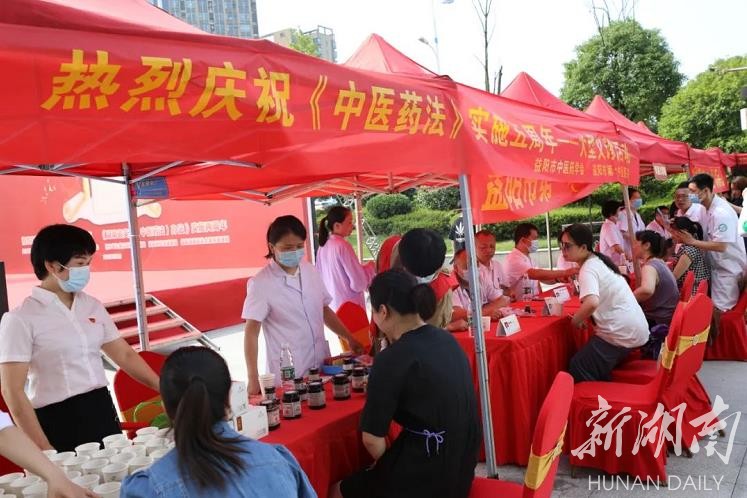 湖南日报·新湖南客户端7月4日讯(通讯员 叶峰)为深入推进中医药法贯彻落实,营造知法、普法、用法的良好社会氛围,7月1日,《中华人民共和国中医药法》实施五周年和《湖南省实施〈中华人民共和国中医药法〉办法》实施两周年之际,益阳市 “法治护航中医药 砥砺奋进新时代”宣传义诊活动在万达广场举行。