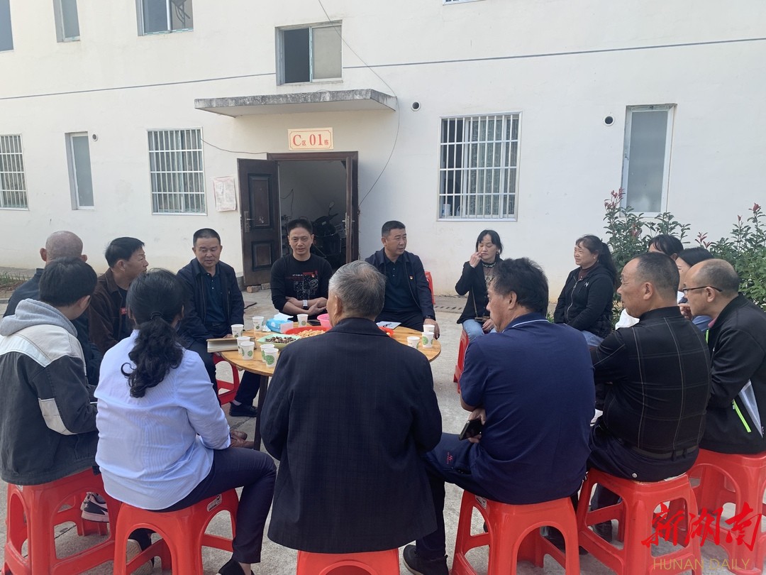 丽日蓝天,金风送爽。10月18日上午,安化县龙塘镇茶乡花海社区C区01栋屋场,社区10多名党员干部和群众聚集在一起,学习党的二十大报告,探讨如何建设和谐社区、促进乡村振兴。安化县委组织部副部长李远胜、龙塘镇党委书记夏玉中也赶来参加。