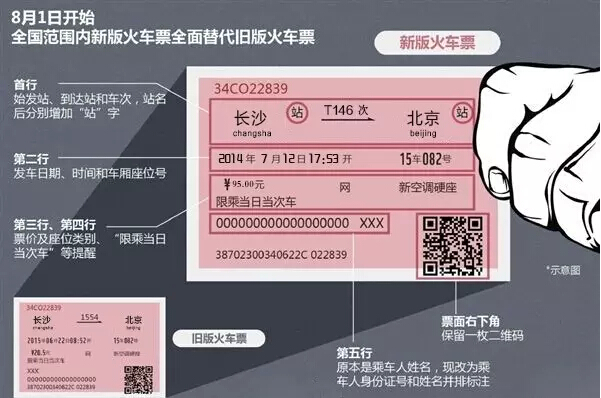 继今年3月火车票背面更新新版《乘车须知》之后,明日起,2015年新版火车票将在全国全面推行。新版火车票对票面进行了微调,增加些服务信息,售票车站和检票口信息也发生了变化。一起去看看新版火车票是啥样的?