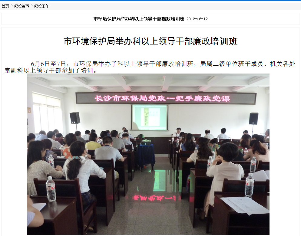 在长沙市环境保护局的官方网站上,还有2012年黎建参加领导干部廉政培训班的新闻。该会议着眼增强领导干部廉洁从政意识和拒腐防变能力的重要举措。在培训班上,黎建作了开班动员报告,对全体参训人员提出了很高、很严的要求。
