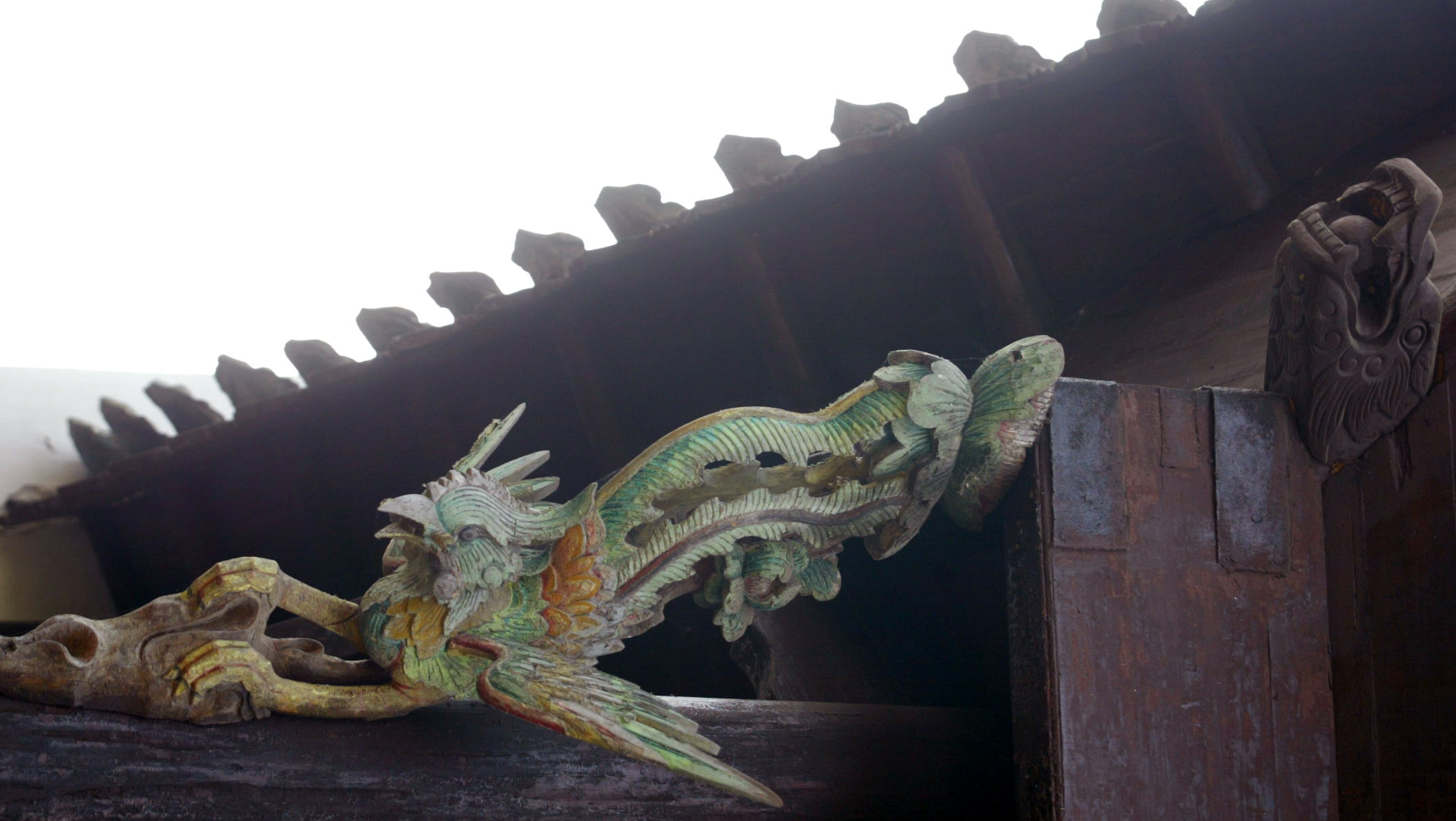越过戏楼看坪,跨过十三层石阶,即到达中殿。此殿进深三间已被辟为柳宗元生平展室。荧光灯下,玻璃框里,配以图表、绘画的峻黑文字,浓缩柳子“风波一跌逝万里,壮心瓦解空缧囚”的一生。它们安静、冷冽、清寒,一幅一幅地铺陈过来,像排列齐整的钢琴琴键,轻轻按下去,你便可以听到那一曲千年不绝的柳子悲歌。