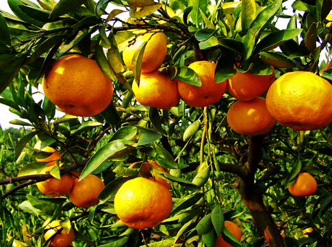 放眼雪峰蜜桔的主产地,每逢寒露过后,雪峰山下,资江两岸,密匝匝的桔林里,累累果实有如万千小灯笼,金灿灿,红彤彤,在墨绿的林叶间灼灼闪耀。那美景,正如唐代诗人张彤所描绘的:“树树笼烟疑带火,山山照日似悬金”。