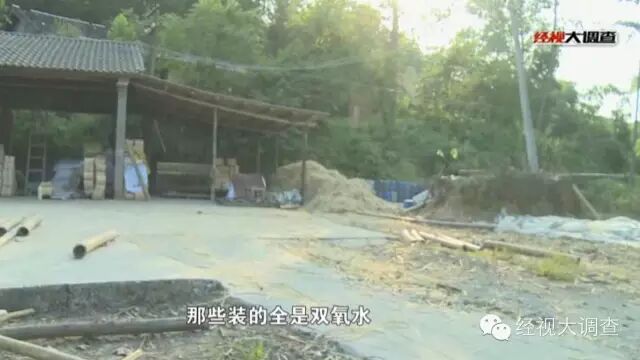 在随后的近十家筷子企业暗访中,记者都发现了两种化工材料,知情人介绍,当地用于筷子加工化工材料远不止这些,离黄家桥村不远的一些化工店向筷子生产企业专门提供化工材料。除了记者看到的双氧水,这家店老板还介绍,当地的筷子生产还会使用硫磺烘干、工业蜡抛光等情况,这显然已经不是什么秘密。