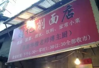 已经开了十年,经营者是长沙水风井刘家六个兄弟姐妹,掌厨的是家里的老二刘伟国,也就是招牌上挂着有三十年从业经历的“新华楼老师傅”。 长沙的老店都有一份脾气,刘记的脾气在于营业时间,每天下午五点半才开门,去早了没得吃。除了刀削面以外,店里还有小碟子的凉菜,猪脚也是这里点击率颇高的一道菜品。